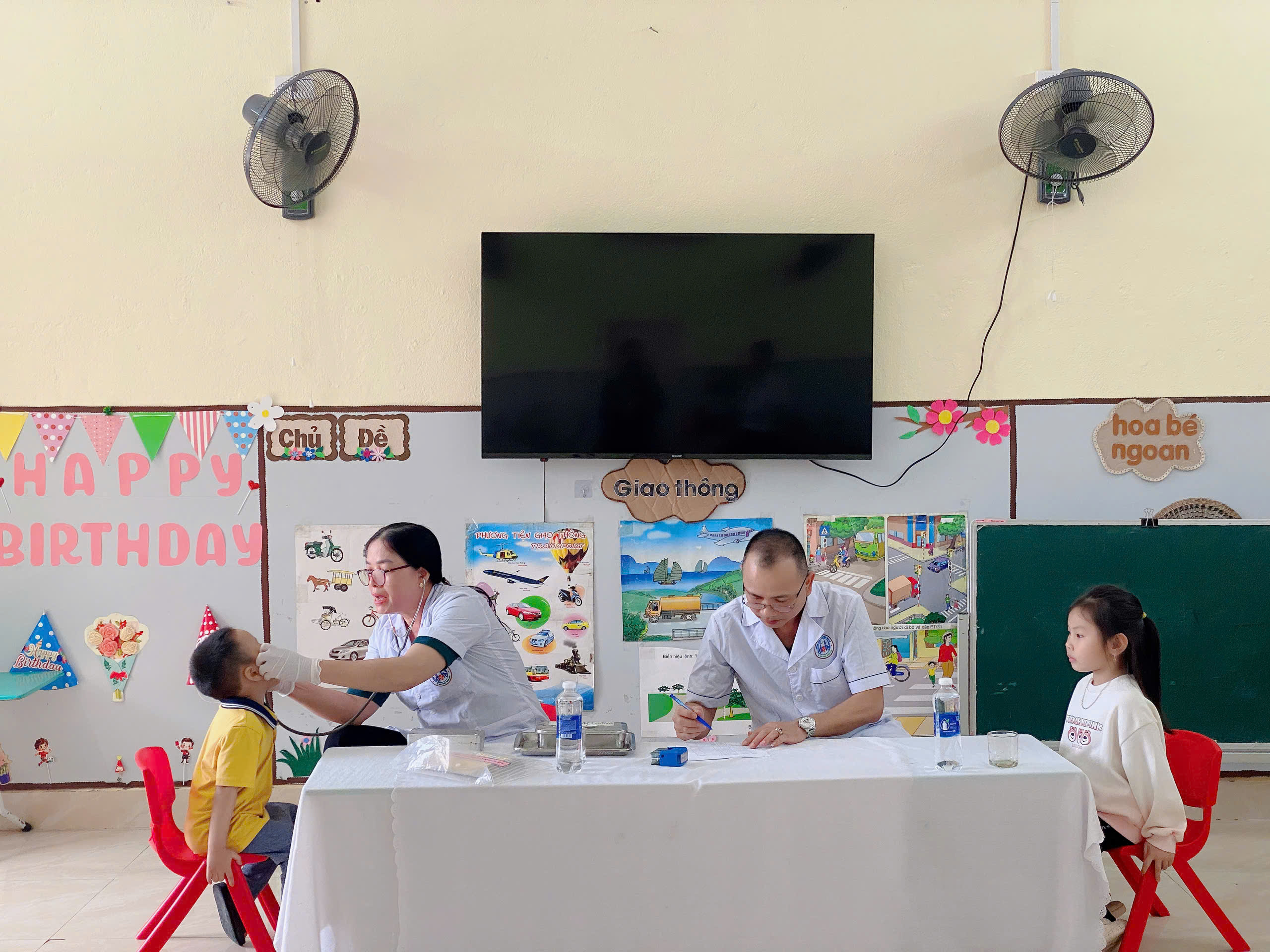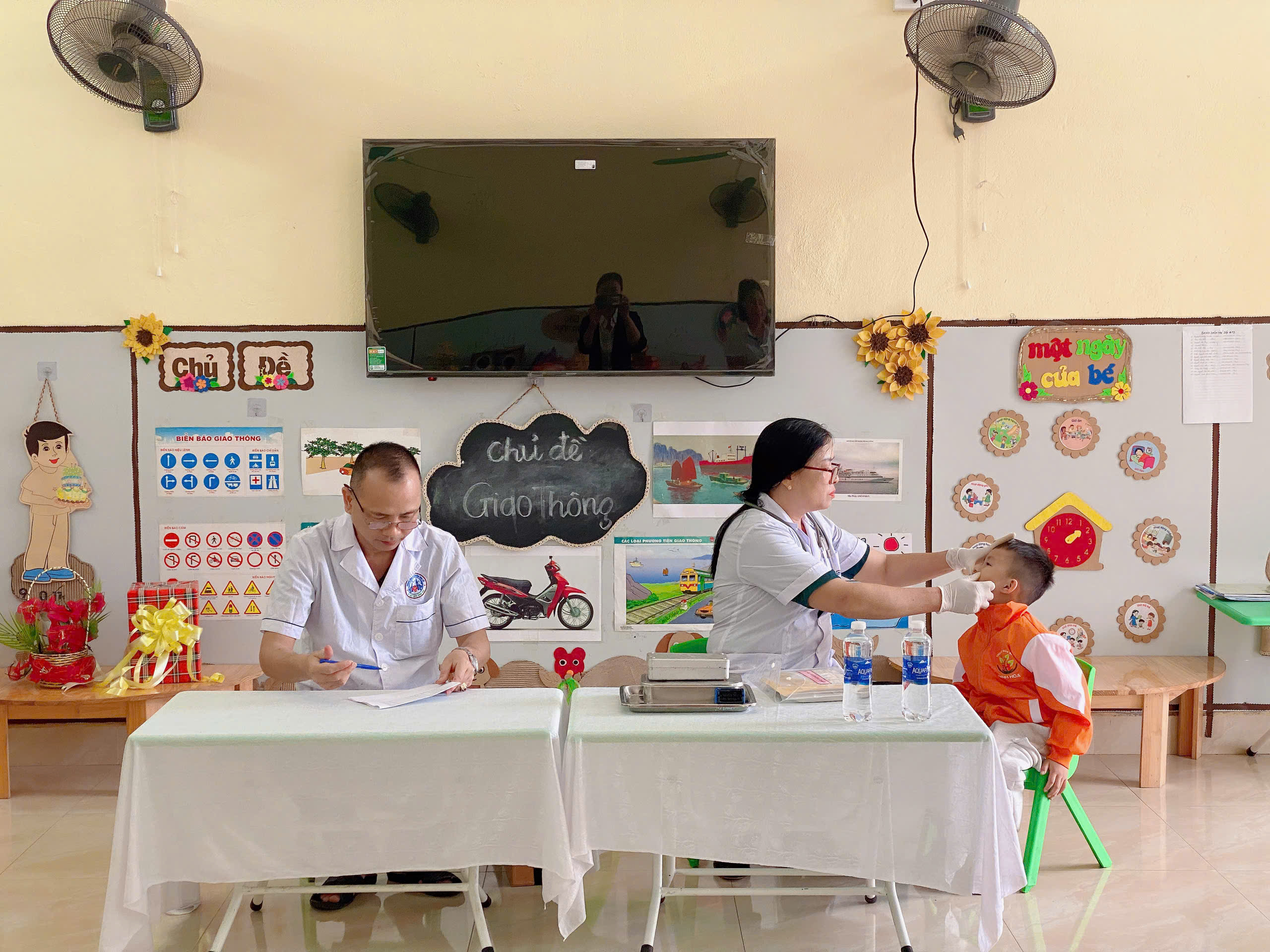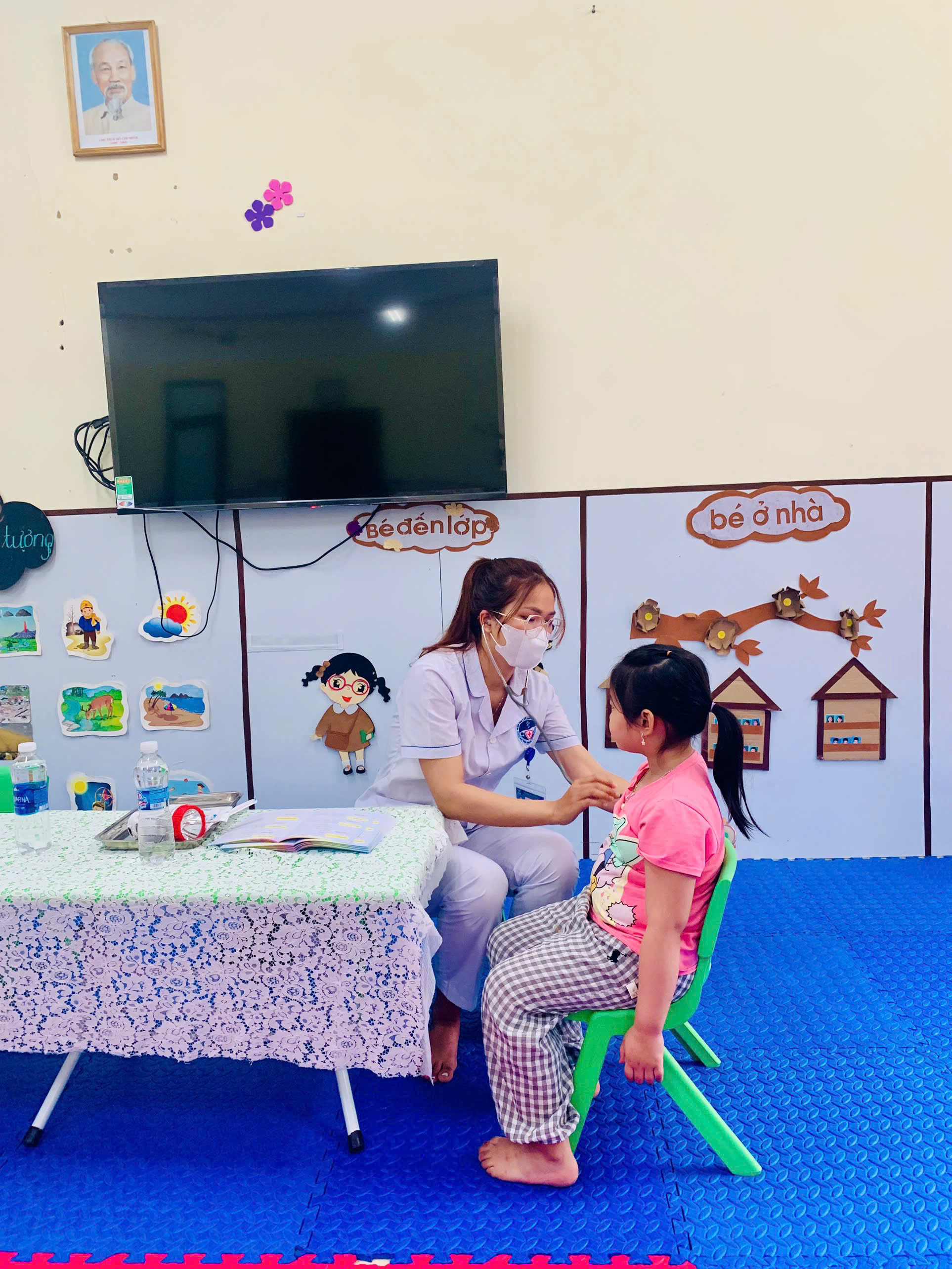 Thực hiện Kế hoạch số 17/KH-TYT ngày 17 tháng 3 năm 2026 về việc tổ chức khám sức khỏe học sinh trên địa bàn phường Tây Hoa Lư, hôm nay, ngày 19/3/2026, trường Mầm non Ninh Hòa được đón tiếp các y bác sỹ của Trạm y tế phường về thực hiện công tác khám sức khỏe định kỳ, cân, đo và đánh giá thể trạng cho trẻ.