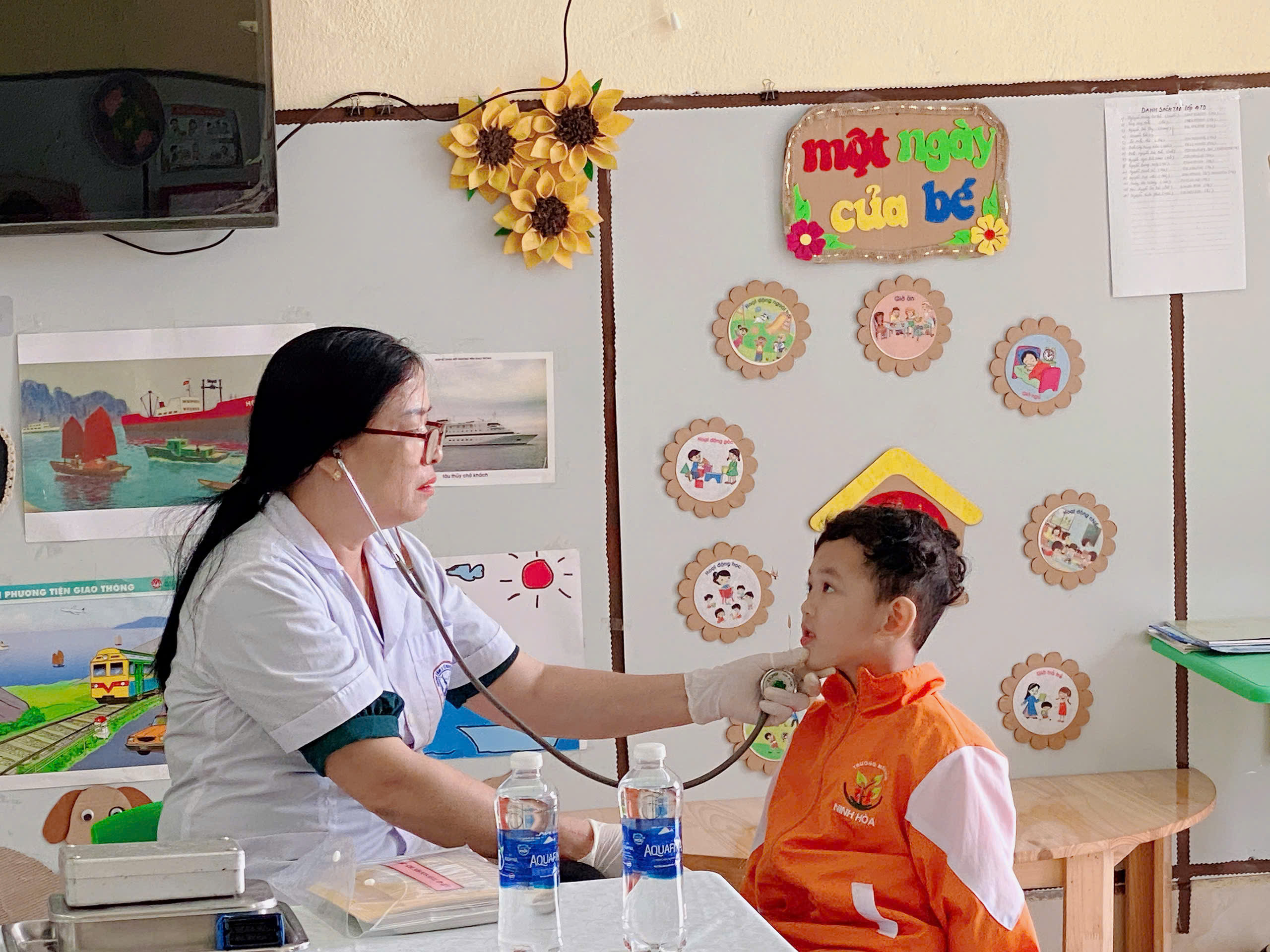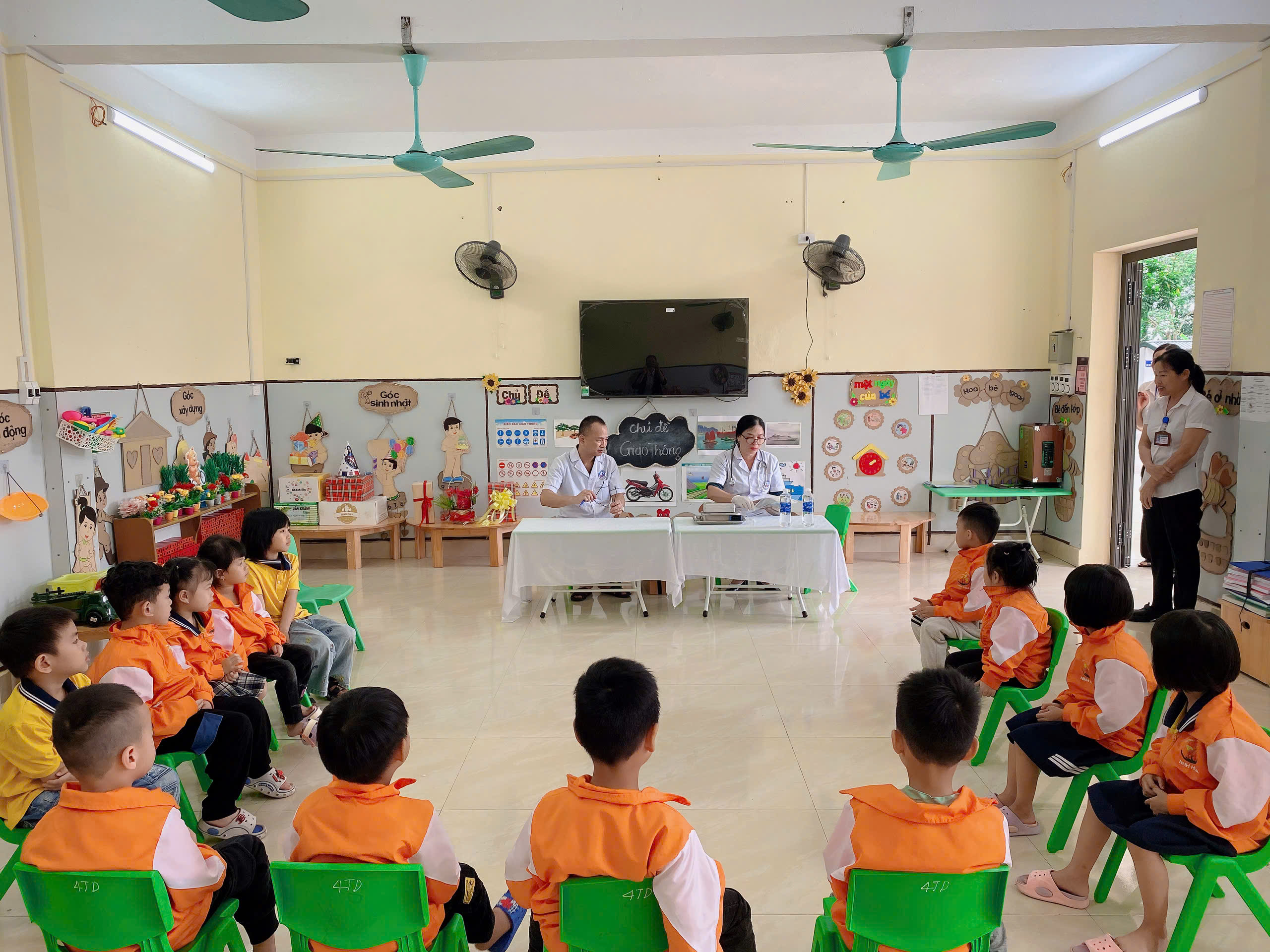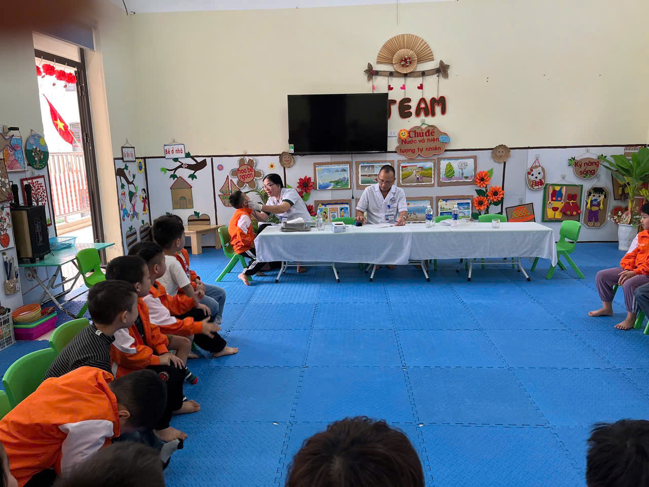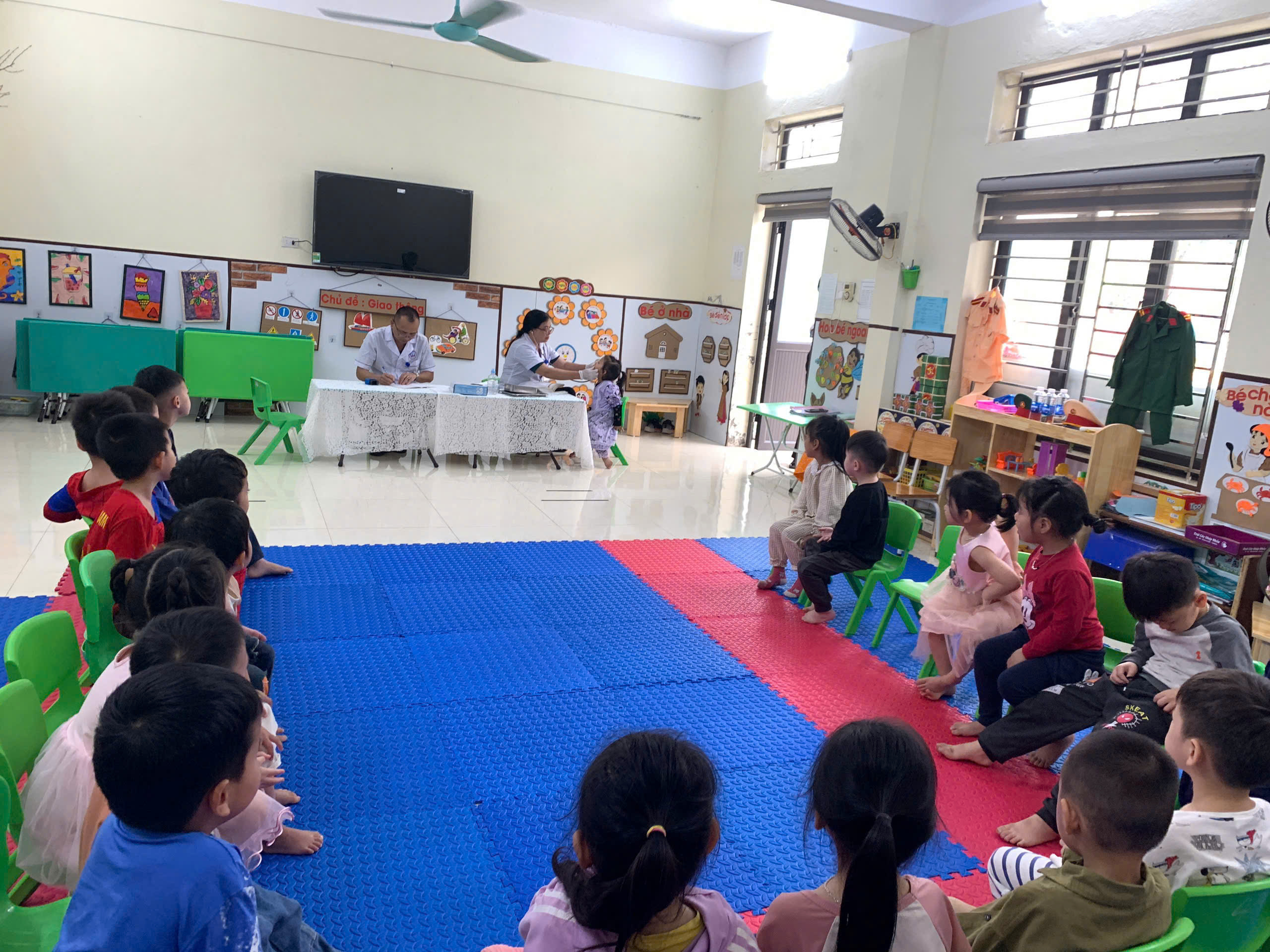 Thực hiện Kế hoạch số 17/KH-TYT ngày 17 tháng 3 năm 2026 về việc tổ chức khám sức khỏe học sinh trên địa bàn phường Tây Hoa Lư, hôm nay, ngày 19/3/2026, trường Mầm non Ninh Hòa được đón tiếp các y bác sỹ của Trạm y tế phường về thực hiện công tác khám sức khỏe định kỳ, cân, đo và đánh giá thể trạng cho trẻ.